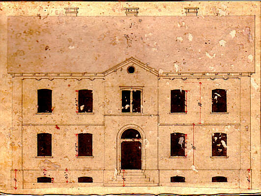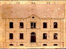 Startseite Unsere Gemeinde Ortsdaten & Lage Geschichte 3. Schule von 1848/49 - die Original-Baupläne 3. Schule - Aufriss Frontseite