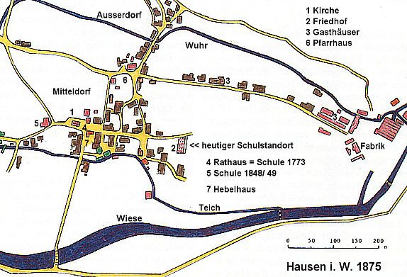 Die Einwohnerzahl wird auf 340 geschätzt, da 68 Wohnhäuser gezählt werden. Unsicherheitsfaktoren sind die Zahl der Einzelwohnungen im Bereich der Fabrik, es dürften an die 30 sein. Auch die Anzahl von 5 Angehörigen pro Haushalt zum Beginn der Industrialisierung ist zu niedrig - man könnte wahrscheinlicher